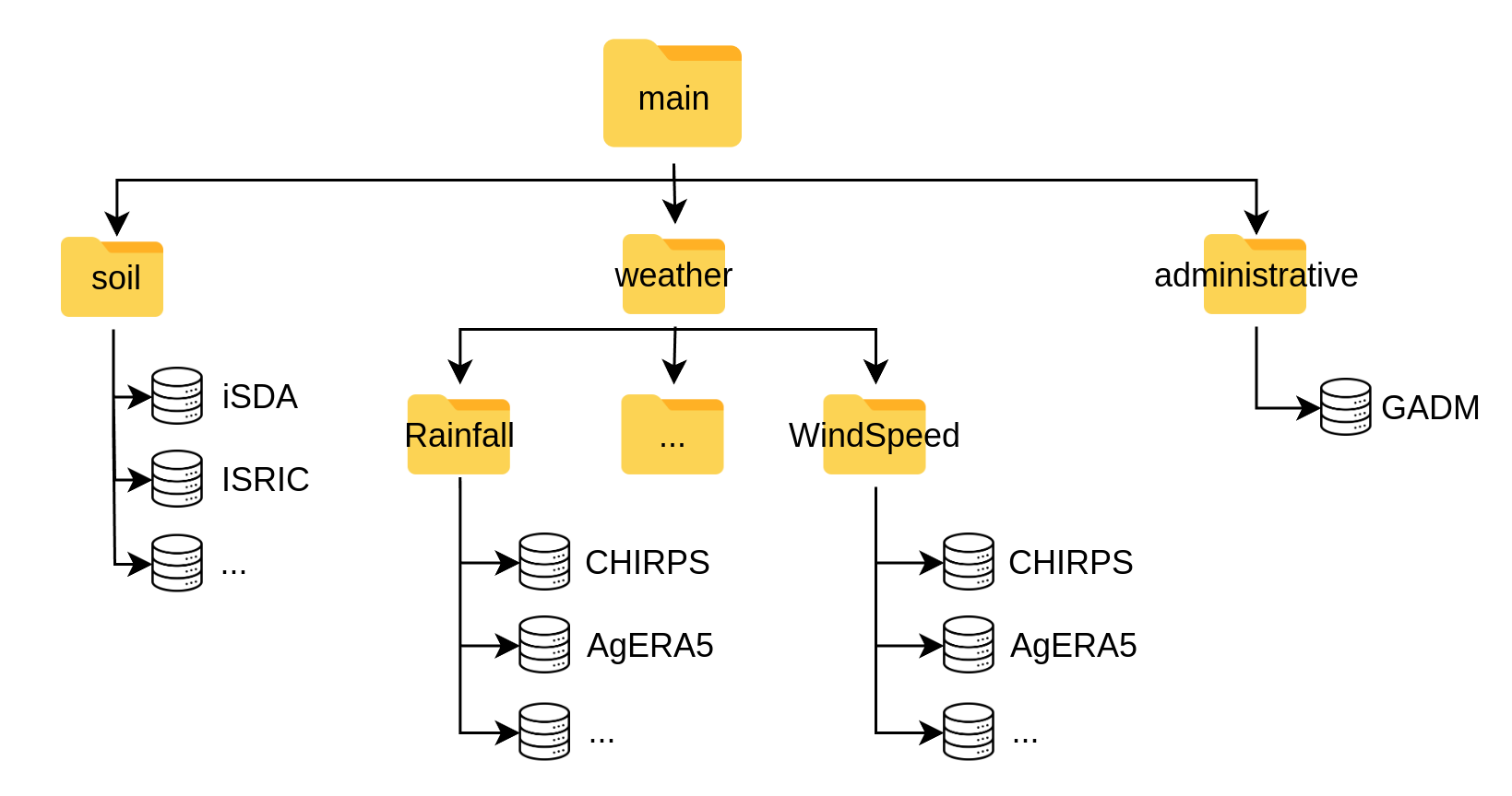 At this moment main contains 3 sub-folders: soil, weather and administrative, with a README.md describing the contents.