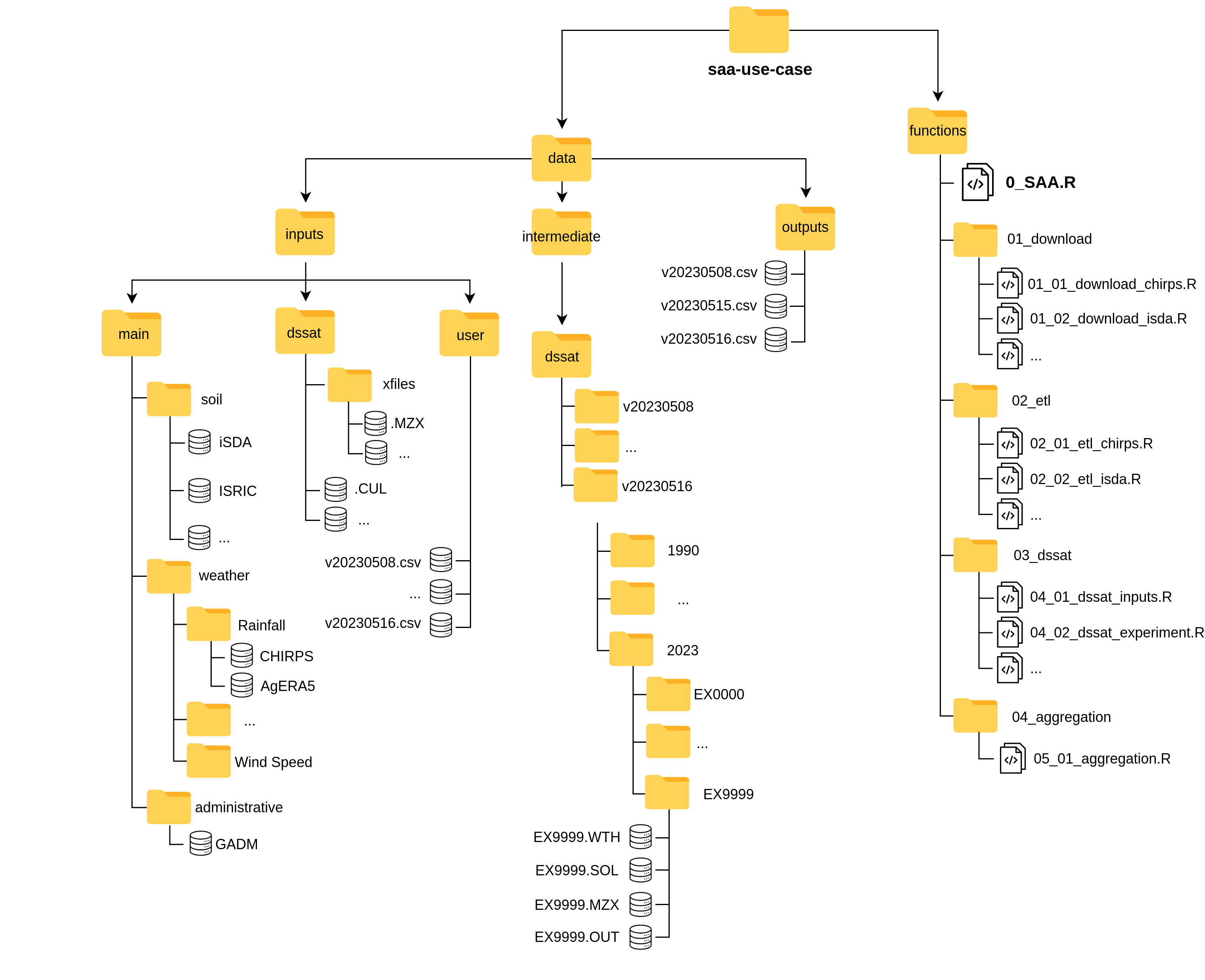 Each instance of the Mashawara DST starts from a similar structure of the root directory. This space has a specific architecture to facilitate the management and use of the tool, and users are encouraged to maintain it or keep it to the extent possible. This design facilitates the separation between data and processes. Figure 2 describes the structure of the system. It is important to observe the clear separation into 2 main sections: data and functions. The folder “data” is the section where the information should be stored, and it is described with detail in this entire section. The folder “functions” contains the scripts and processes running in the DST and it is described in the functions section.